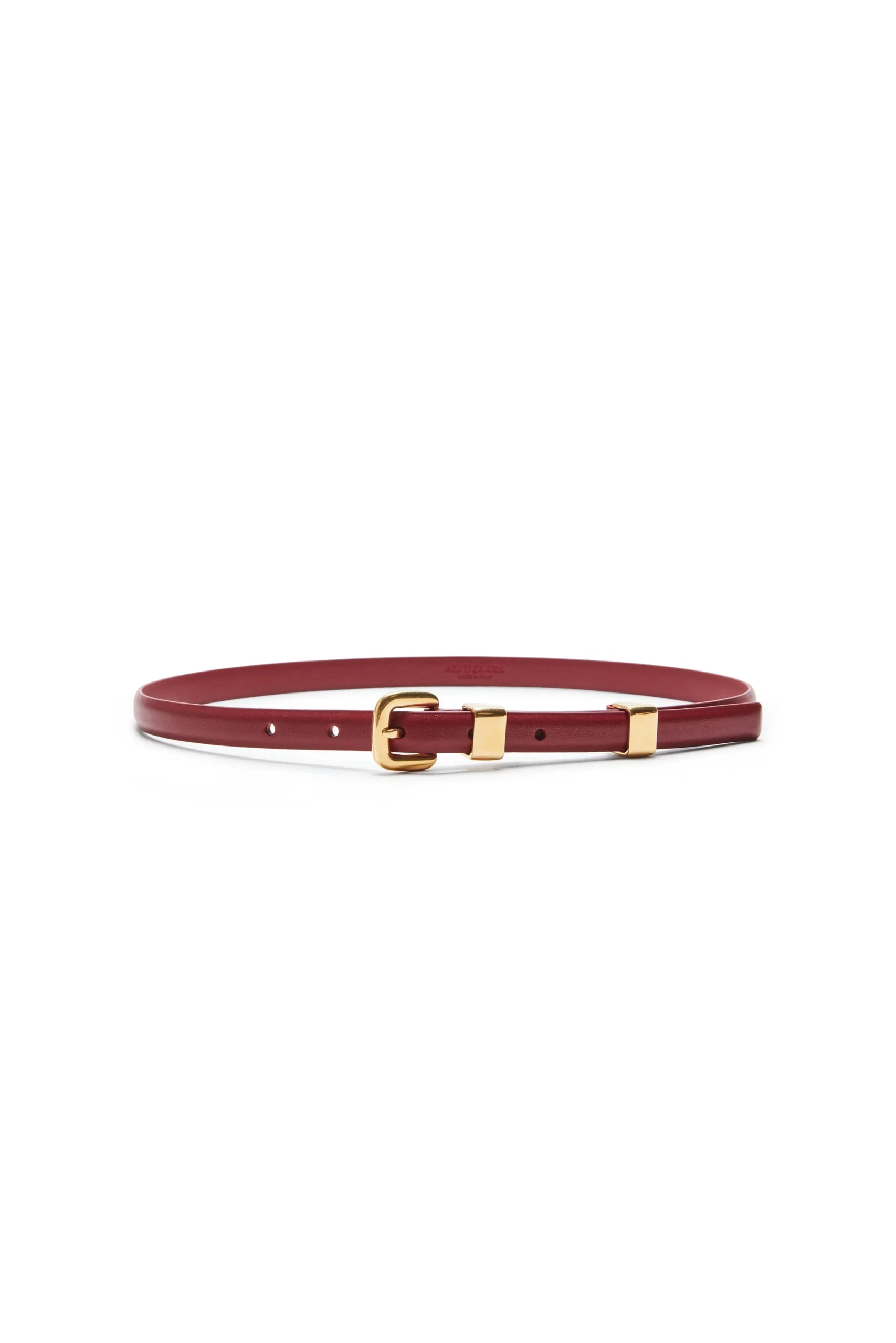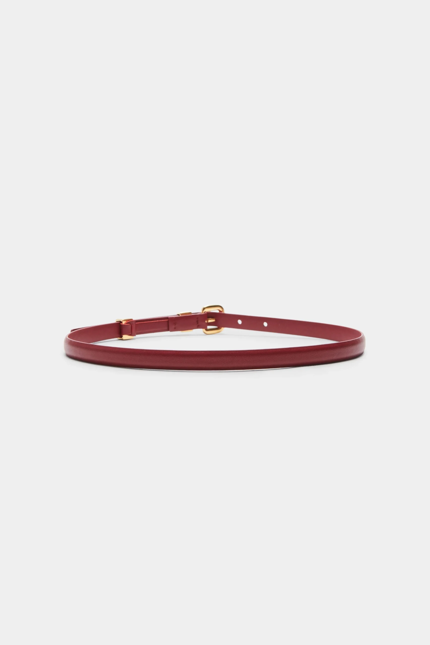 The ‘Skinny’ belt is Italian-made from smooth calf leather with a gold-tone metal buckle fastening and loops.