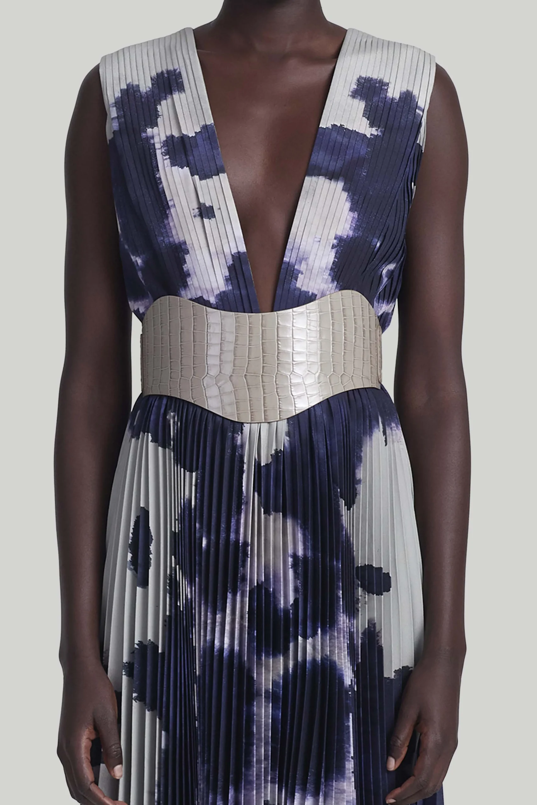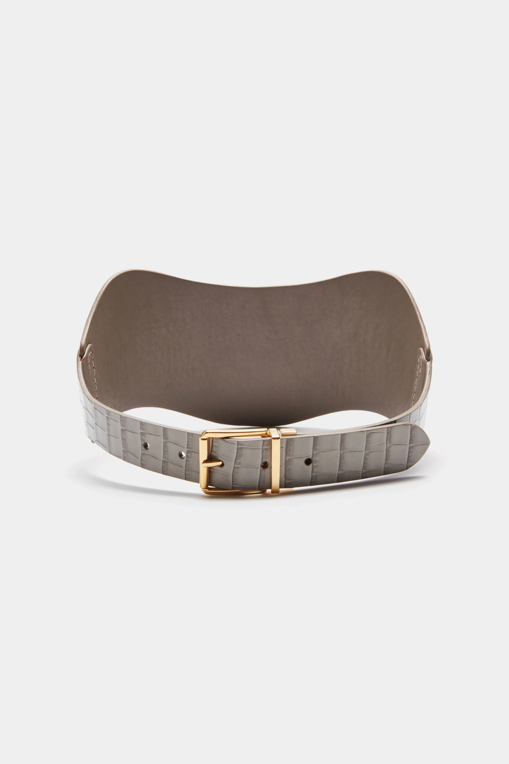 The Reversible Corset Belt is a versatile accessory that effortlessly combines style and functionality. Crafted from supple calf leather, it boasts a wide, sculptural design. It is completely reversible, allowing you to wear it on both sides.