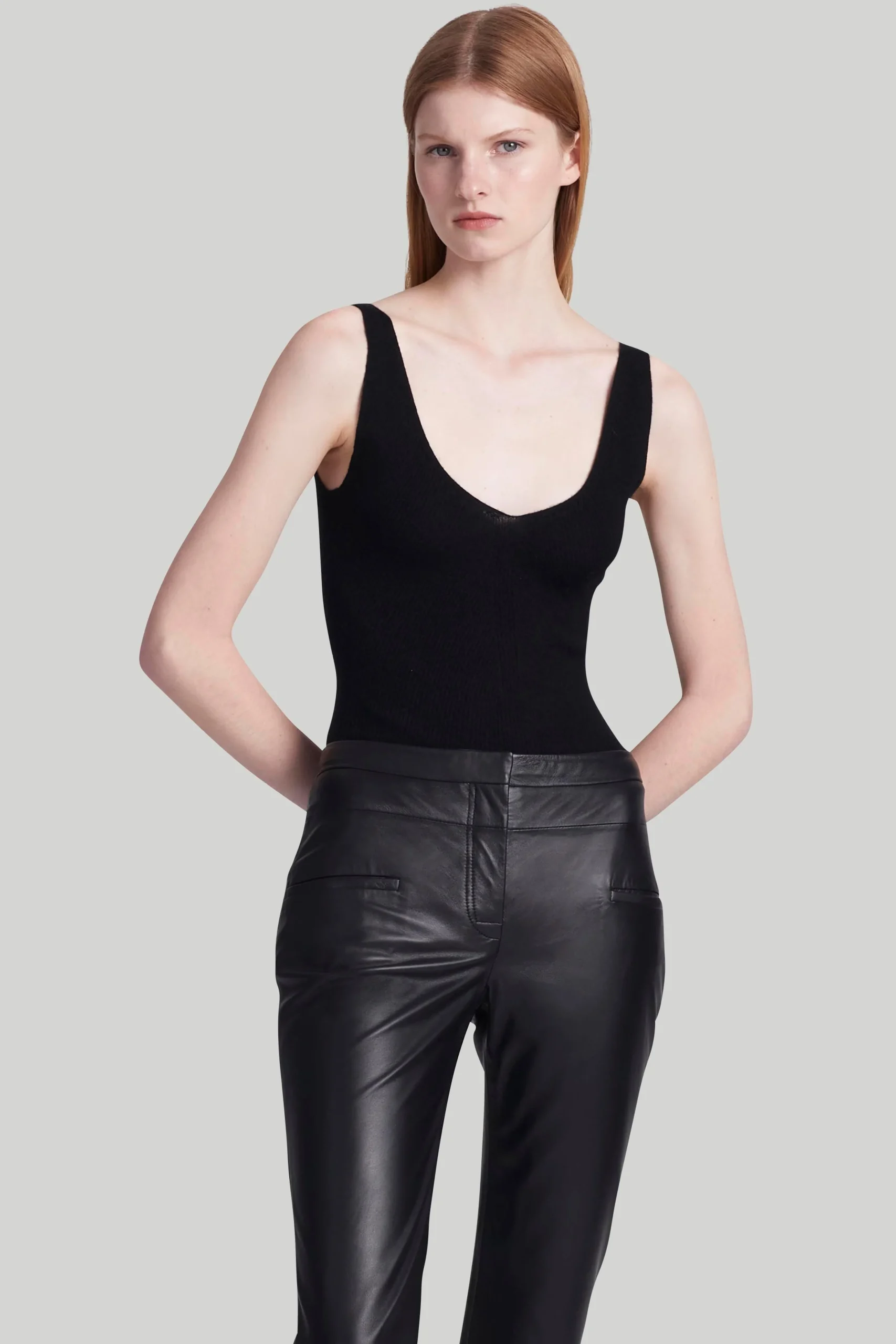 The ‘Sadie’ sweater demonstrates Altuzarra’s focus on elevated fabrics. It’s made from seamless fine gauge cashmere to a ribbed finish, that accentuates the slim-fit silhouette, and shaped with a low scooped neck and back.