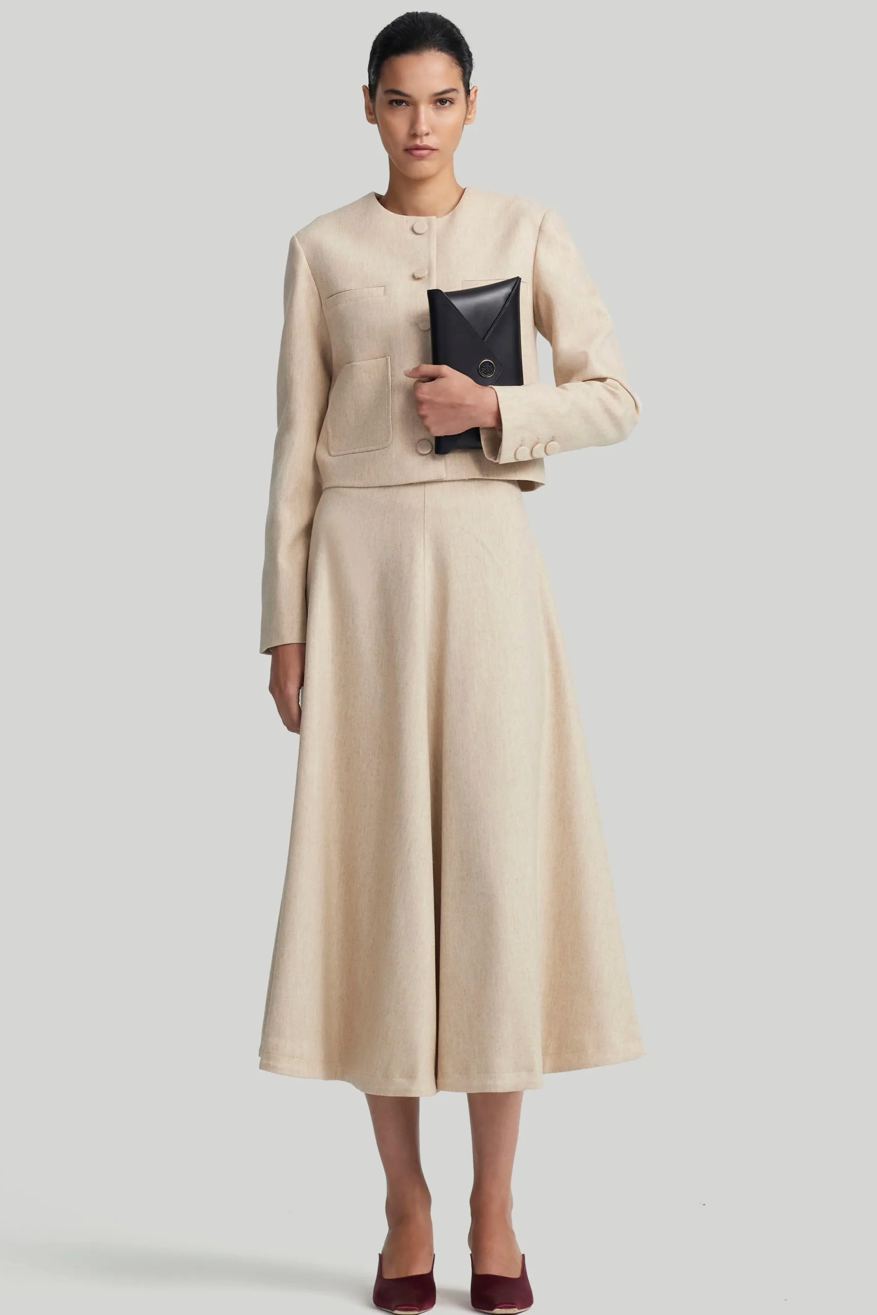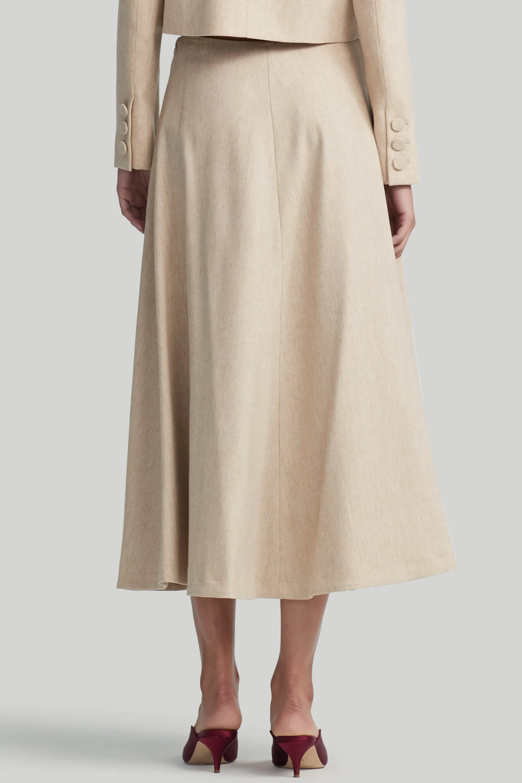 The ‘Varda’ skirt reimagines a timeless A-line silhouette. Cut from wool flannel, it’s crafted to a voluminous silhouette.